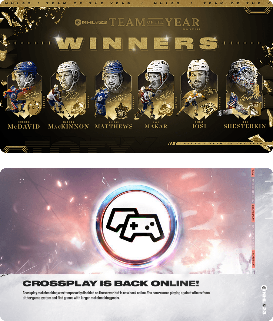 Following launch, the live experience work in NHL 23 became part of how players encountered major feature updates and seasonal events in-game. The system supported high-visibility moments under live-service conditions, ensuring clarity, consistency, and performance across platforms and modes.