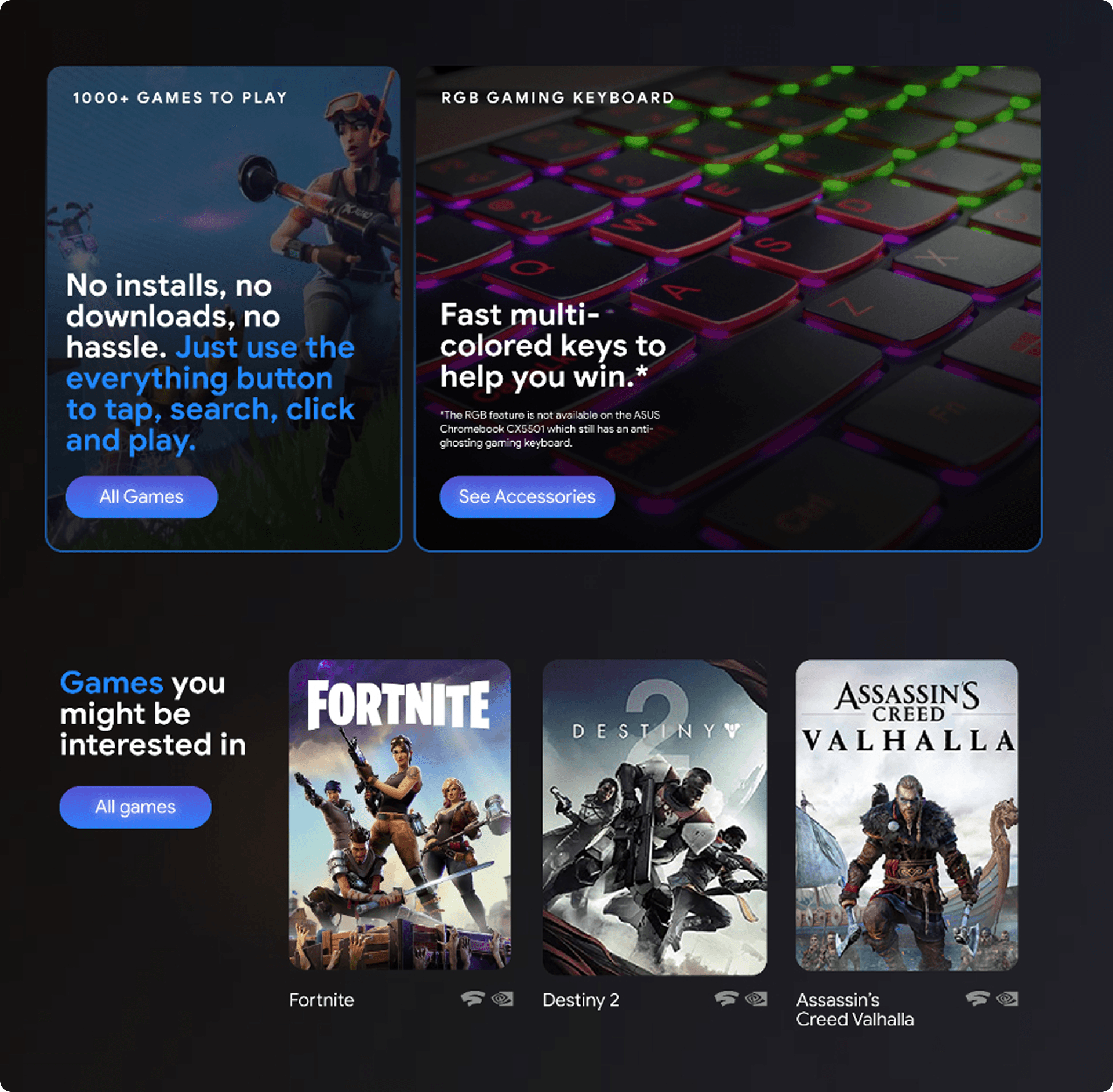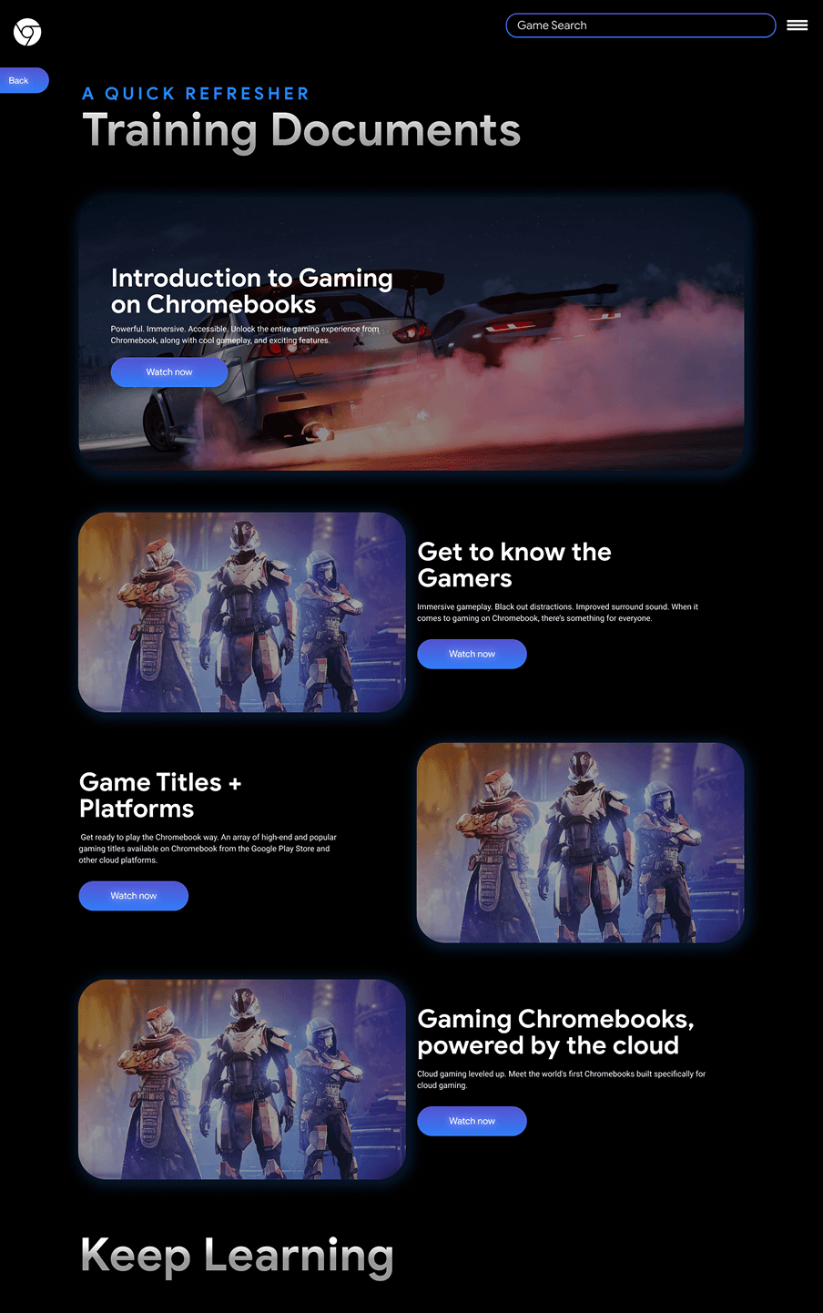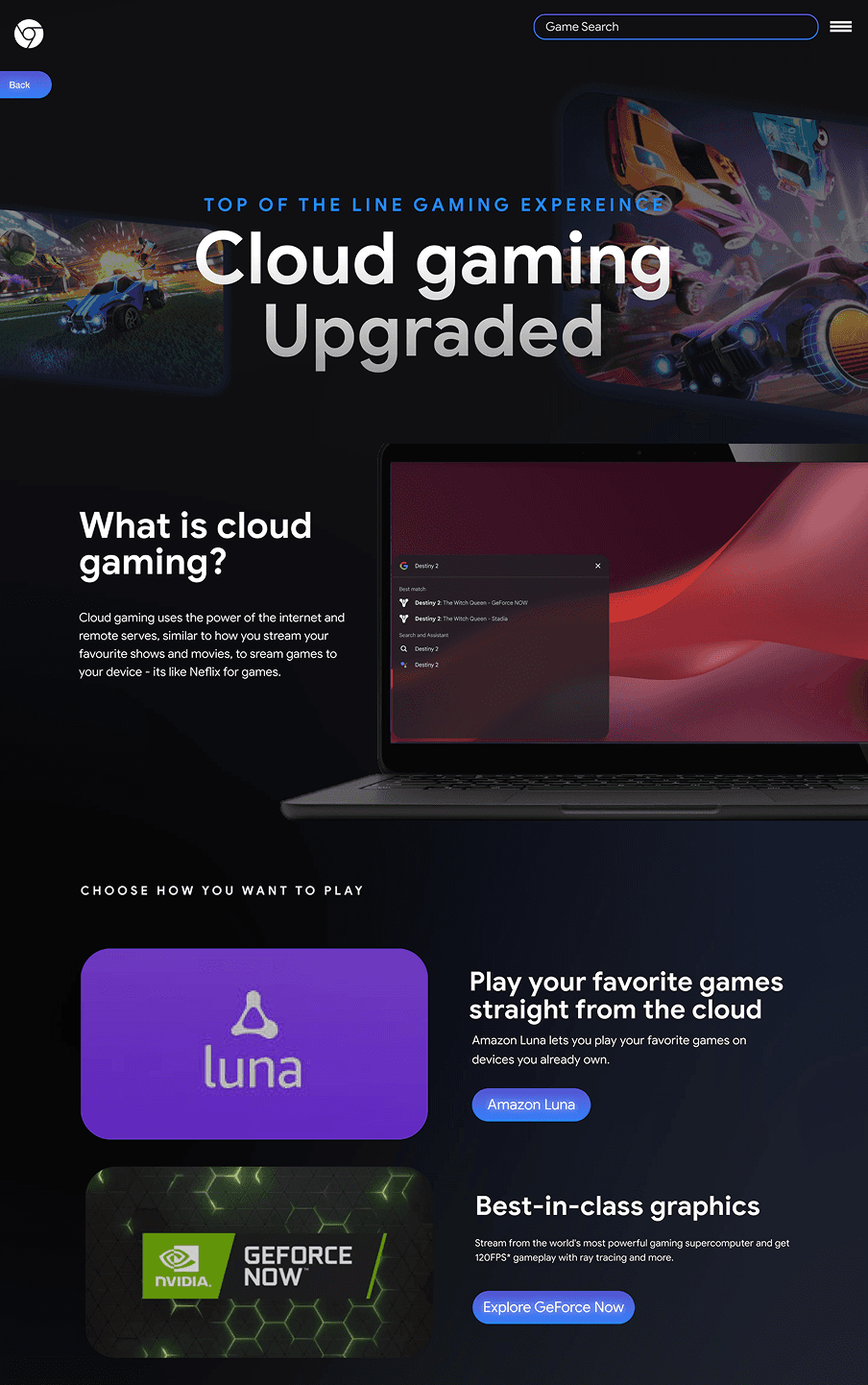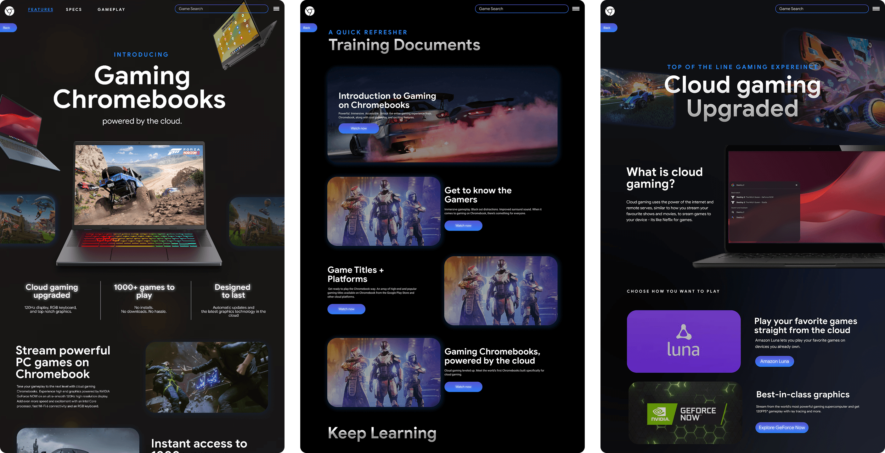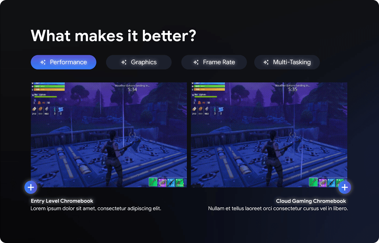 Gaming Chromebooks required balancing high-performance messaging with Chrome OS simplicity, ensuring the experience felt powerful without overwhelming users. The site had to communicate cloud and hybrid gaming clearly while maintaining fast load times and accessibility.